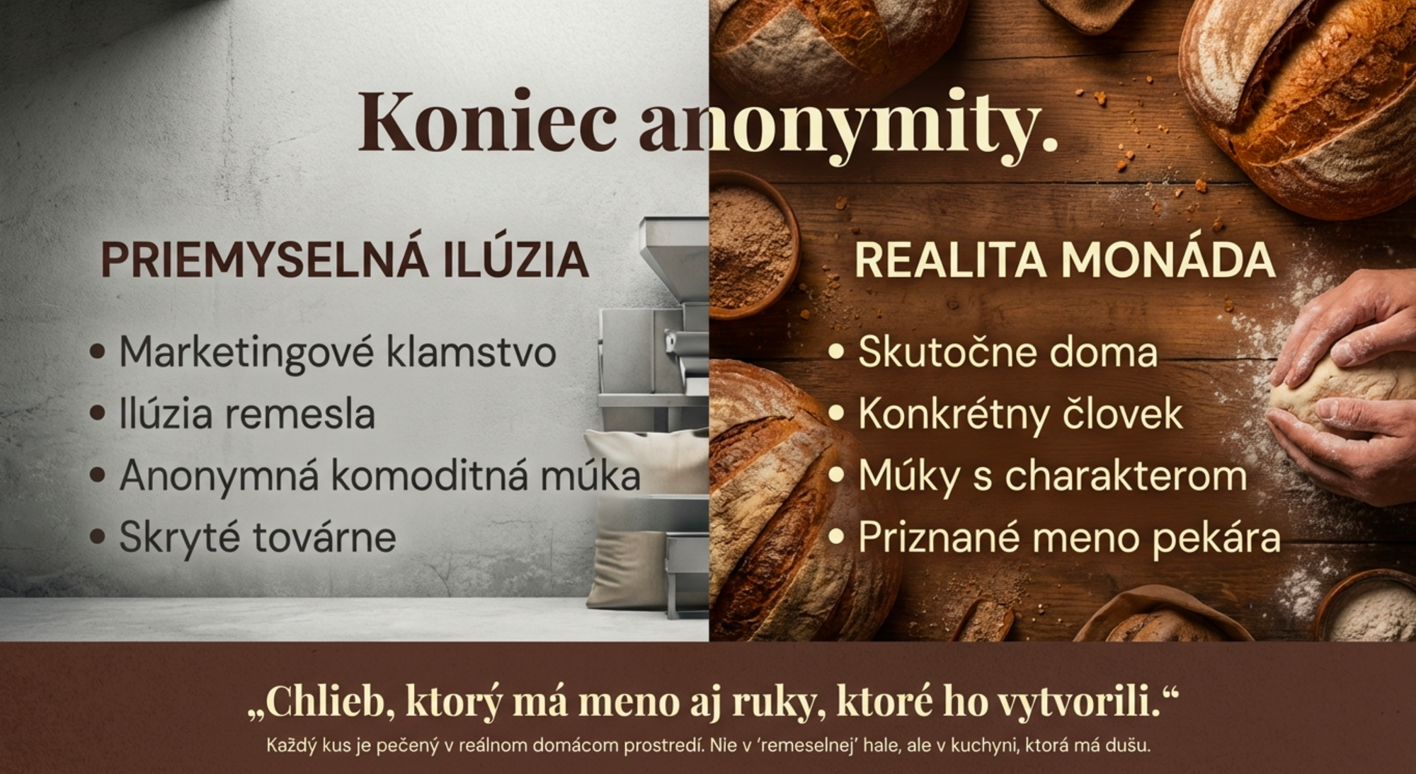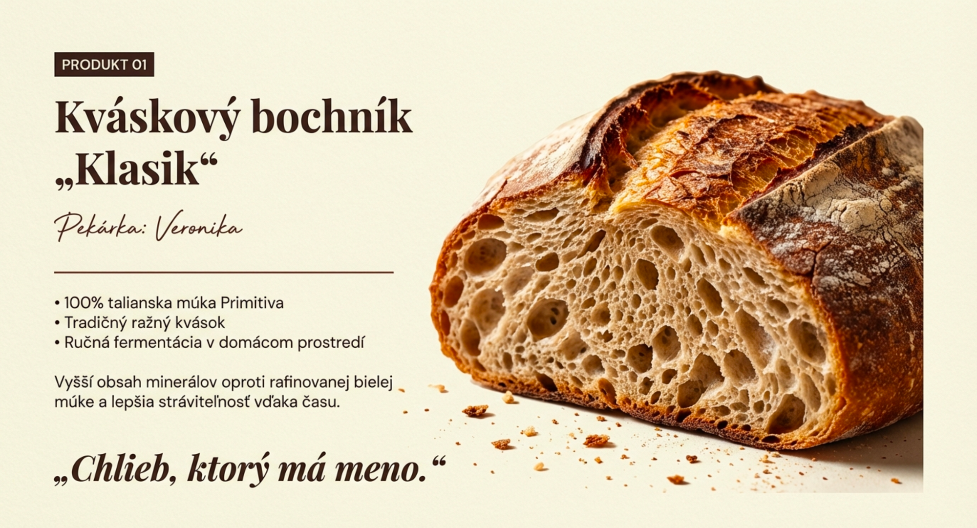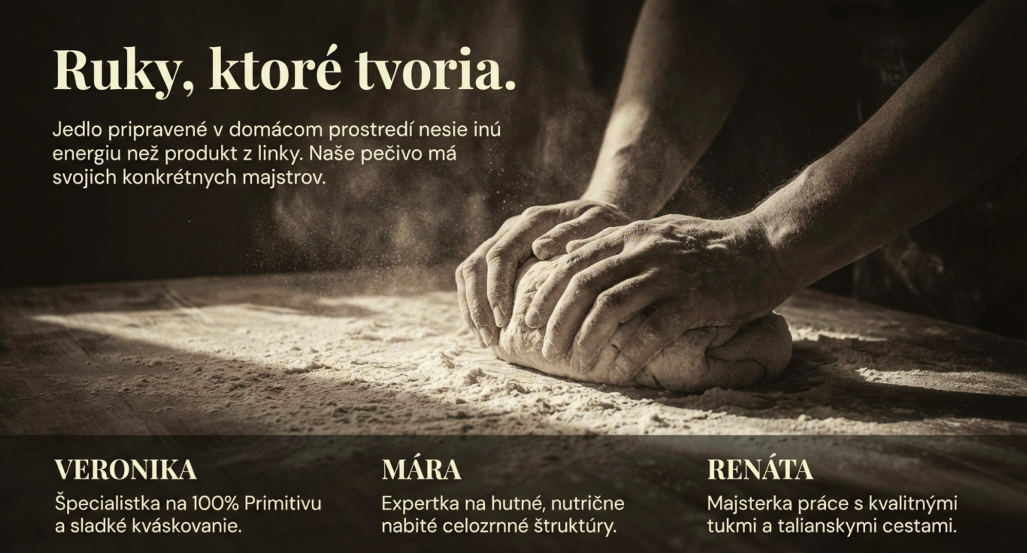 Veríme, že skutočné pečivo má mať identitu. Má mať meno svojho tvorcu. Má mať charakter, ktorý nevzniká v zrýchlenej linke, ale v tichu domácej kuchyne, kde ruky a čas premieňajú múku, vodu a soľ na výživu s hodnotou.