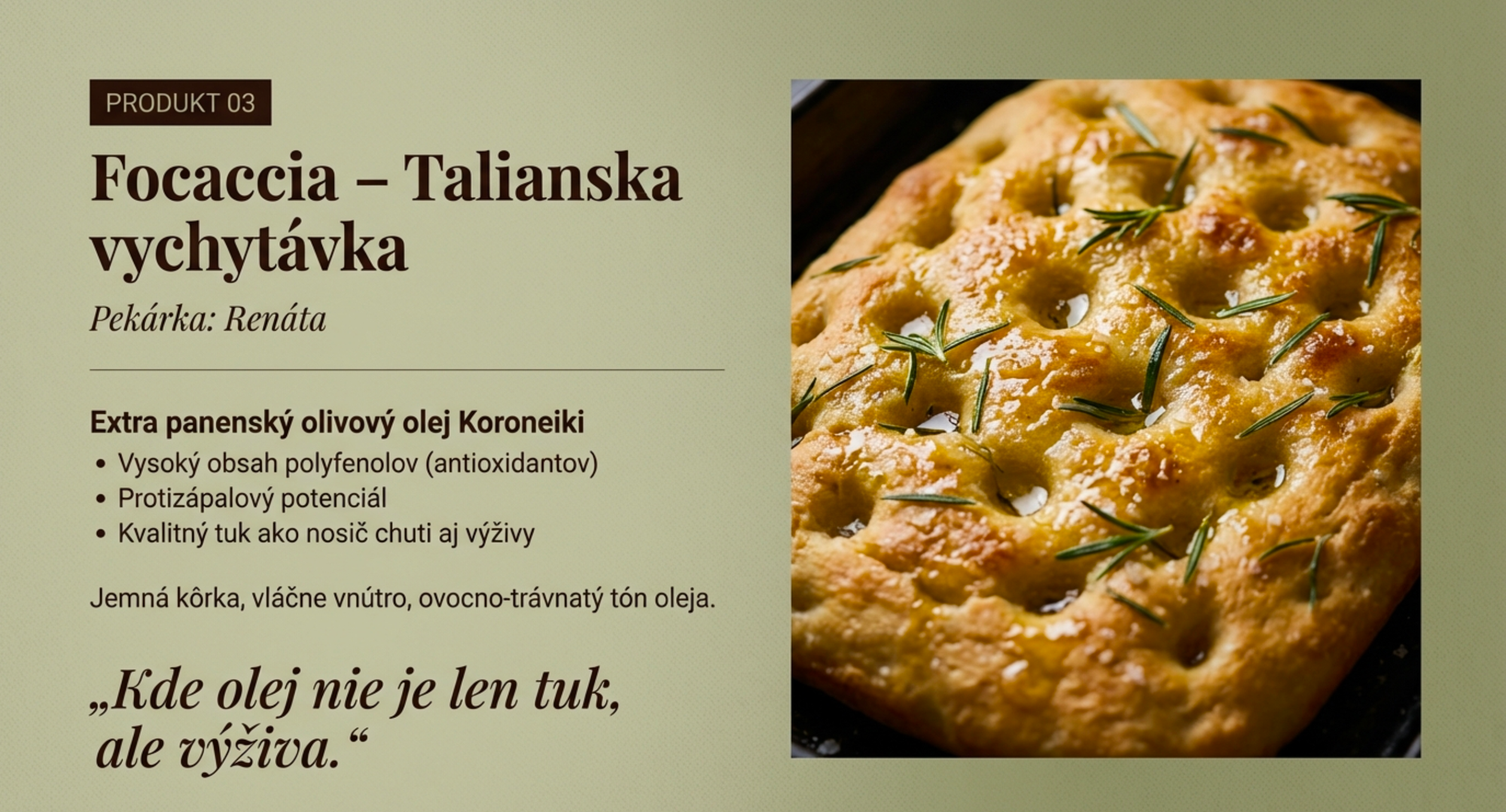 – stredomorskú focacciu s prémiovým olivovým olejom