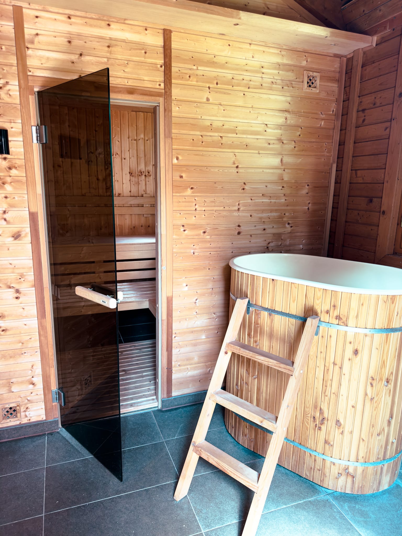 - Wellness v záhrade – fínska sauna s ochladzovacou kaďou, sprchou a oddychovou miestnosťou priamo na pozemku pre Váš dokonalý relax.